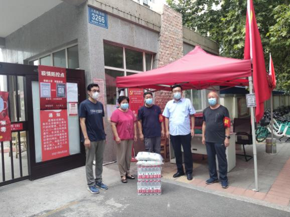 8月20日上午,機電工程學院黨員干部分別來到焦作大學北門、焦作大學教授公寓、郝杰社區、怡園小區、民生街道十一中家屬院社區疫情值班點進行慰問,并為疫情防控一線人員送去瓶裝水和口罩等防疫物資。